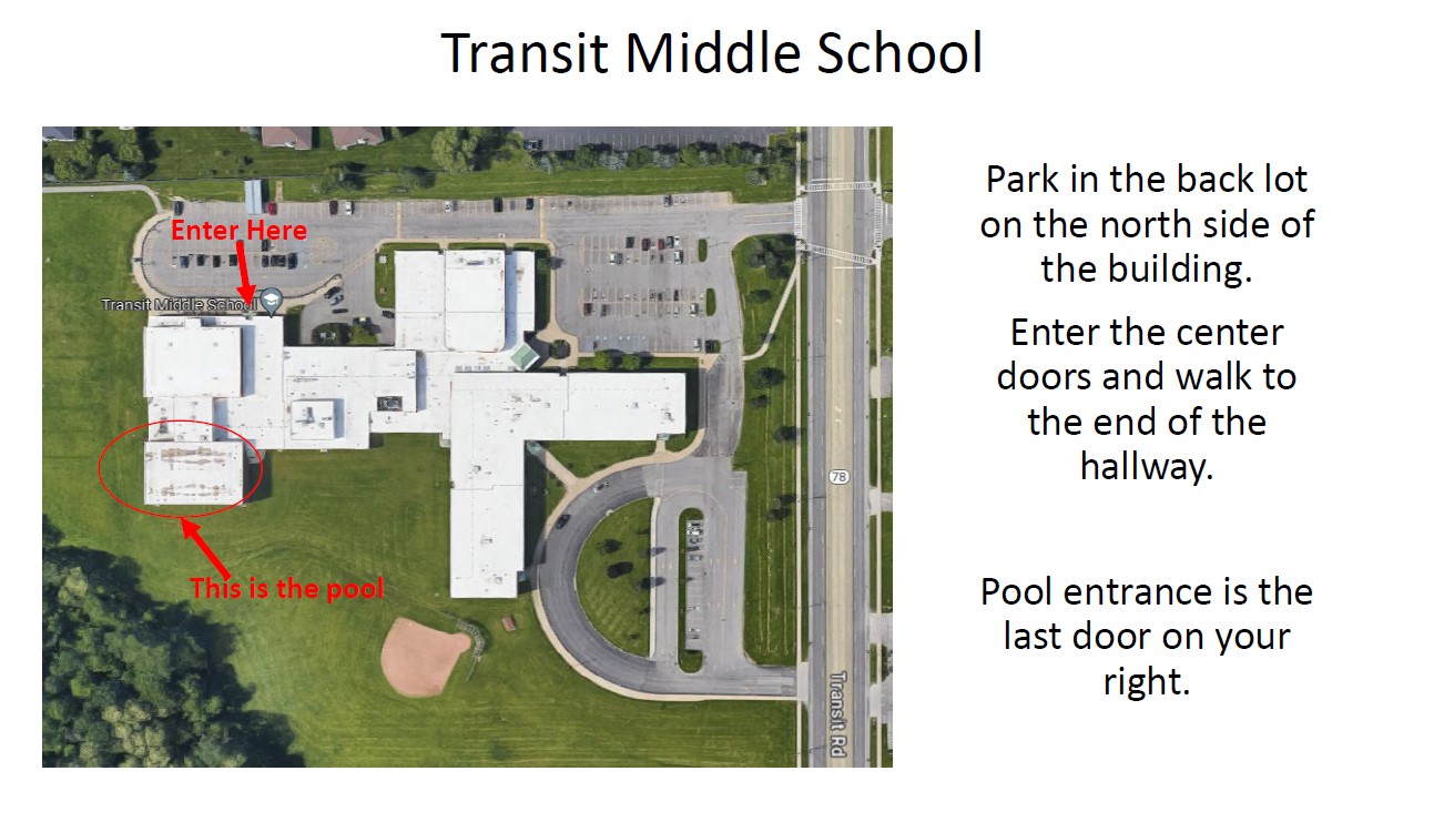 Buffalo Aquatics Learn to Swim, Waves and Tsunamis developmental programs practice at Sweet Home Middle School during weekdays.